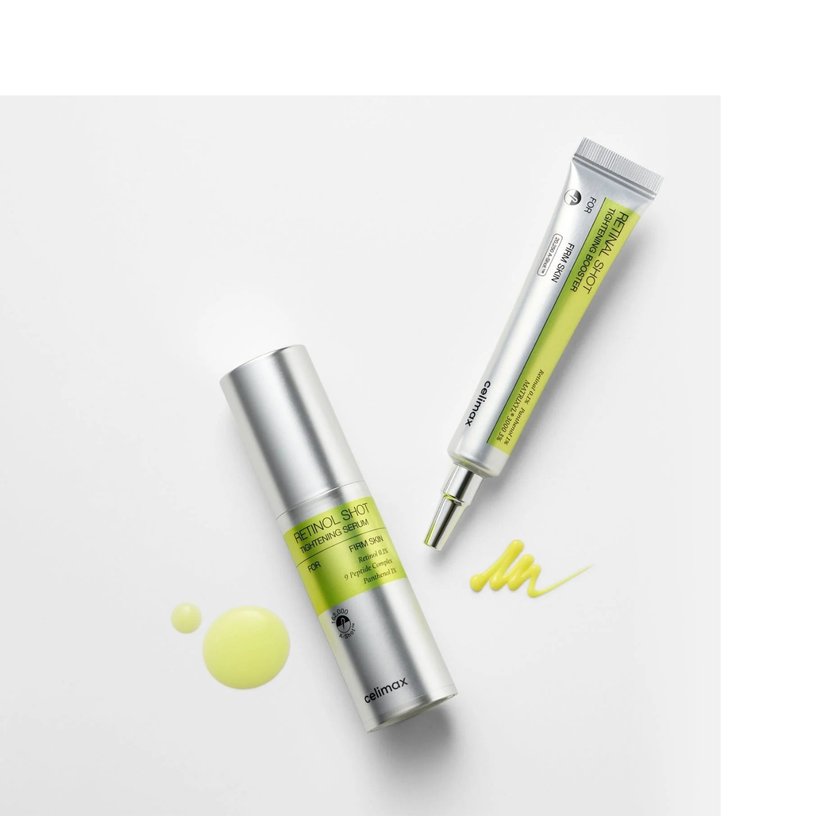 The Vita A Retinol Shot Tightening Booster de Celimax es un tratamiento innovador con retinal liposomado y Matrixyl, formulado para tratar arrugas, textura desigual y poros dilatados. Gracias a la tecnología A-Shot™, mejora la penetración y eficacia de sus activos clave.