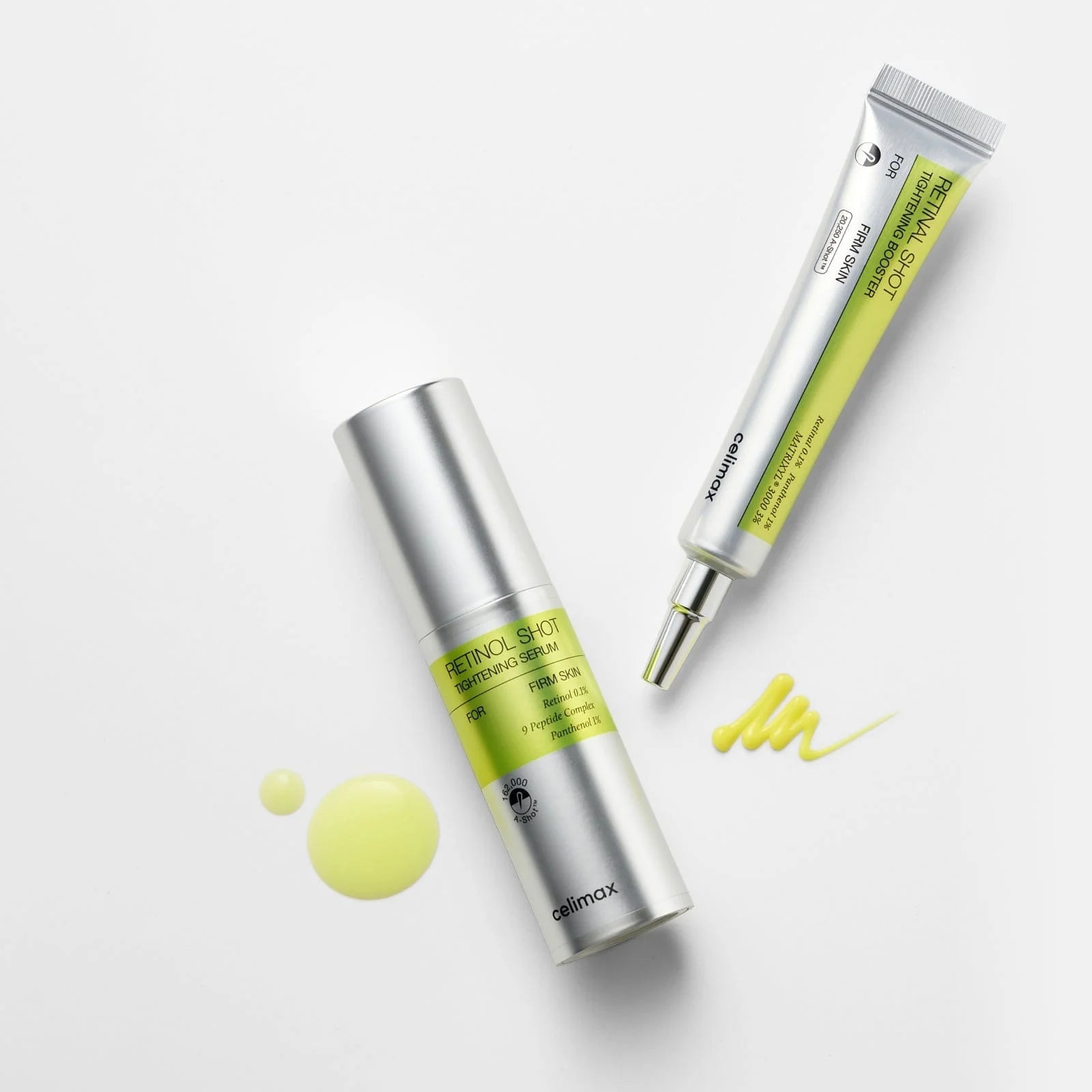 The Vita A Retinol Shot Tightening Booster de Celimax es un tratamiento innovador con retinal liposomado y Matrixyl, formulado para tratar arrugas, textura desigual y poros dilatados. Gracias a la tecnología A-Shot™, mejora la penetración y eficacia de sus activos clave.